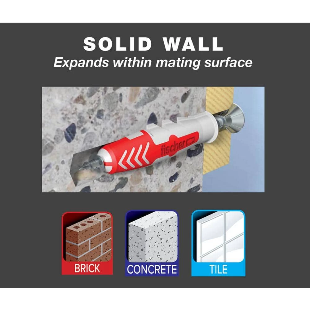 DuoPower is a 1-product solution for quick and easy fastening in a variety of applications and base materials. The gray nylon components automatically activate the optimum product function (expansion, folding, knotting) for the best hold. The red expansion wings support secure expansion and offer additional security to the gray component. Ideal for hanging electrical fixtures, drapery supports, kitchen and bathroom accessories, pictures, mirrors and more. Anchors with a drill size of 3/16 in. accept #4-6 screw sizes. Anchors with a drill size of 1/4 in. accept #6-10 screw sizes. Anchors with a drill size of 5/16 in. accept #8-12 screw sizes.