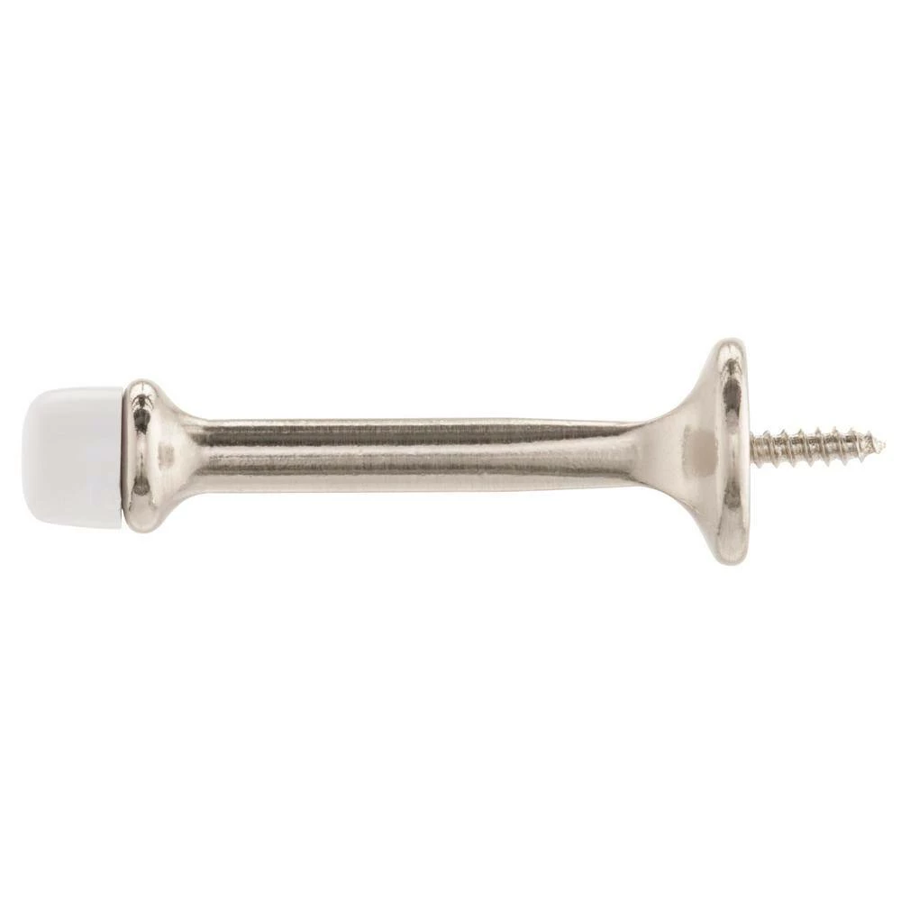 This Decorative Rigid Door Stop is designed to install on a wall, door, or baseboard to prevent wall or door damage. The large rubber tip helps soften contact with wall or door to prevent damage. Simply Installation by fastening to surface with attached mounting screw. The rubber tip easily removes to reveal a screwdriver recess used to install the door stop. The decorative stop design complements any room.