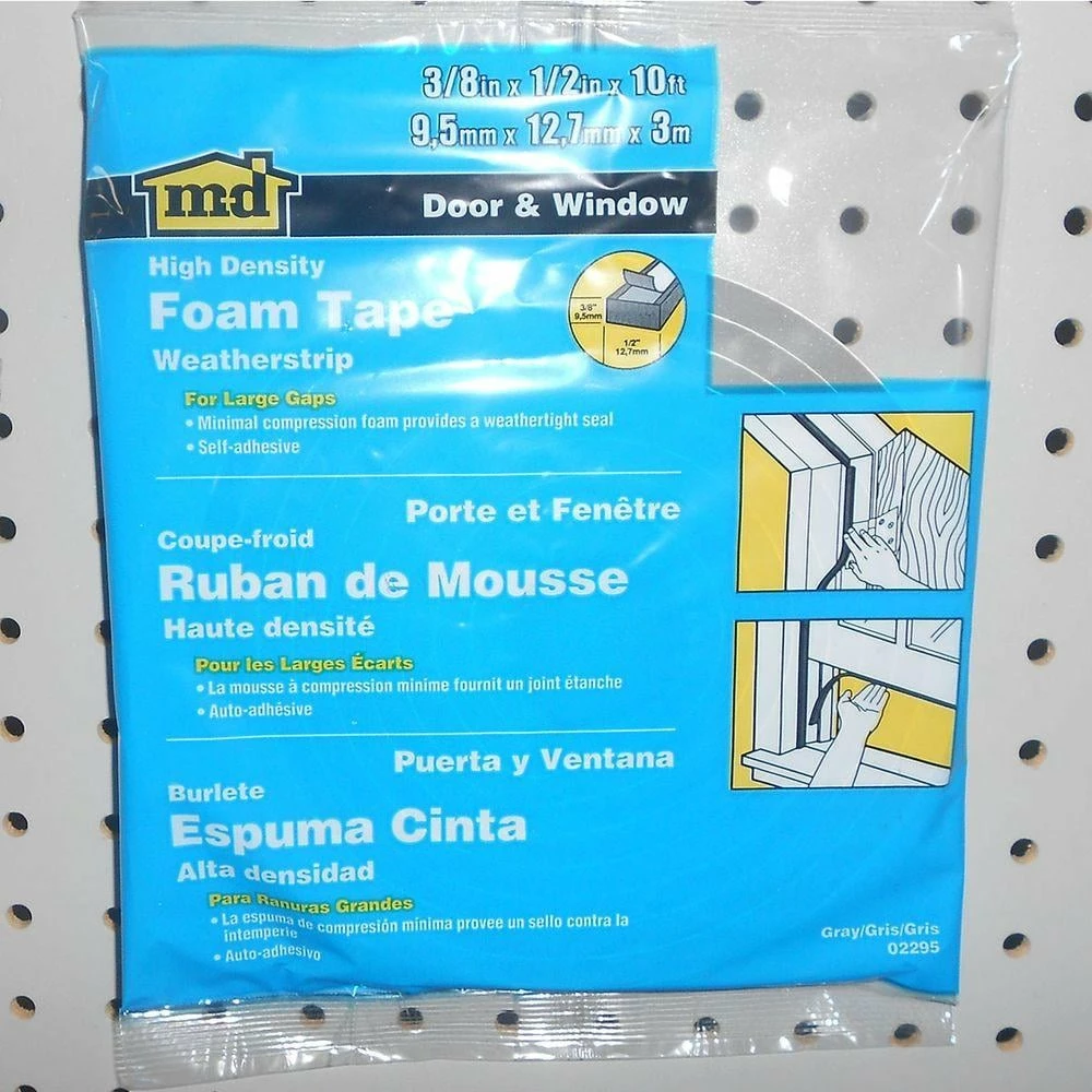 The 1/2 in. x 120 in. High-Density Foam Tape makes it easy to seal doors and windows. The PVC construction is durable and waterproof, and the tape features a self-adhesive application for easy installation. Easily solve your leak problems around doors using this product.