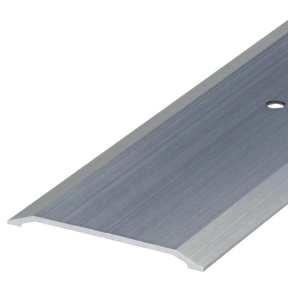 The M-D Aluminum Flat Top Threshold is used to create a transition in an interior door way or between two different floor surfaces. All of the hardware needed for installation is included. Before installation, the threshold can be cut to a desired length by using a hacksaw.
