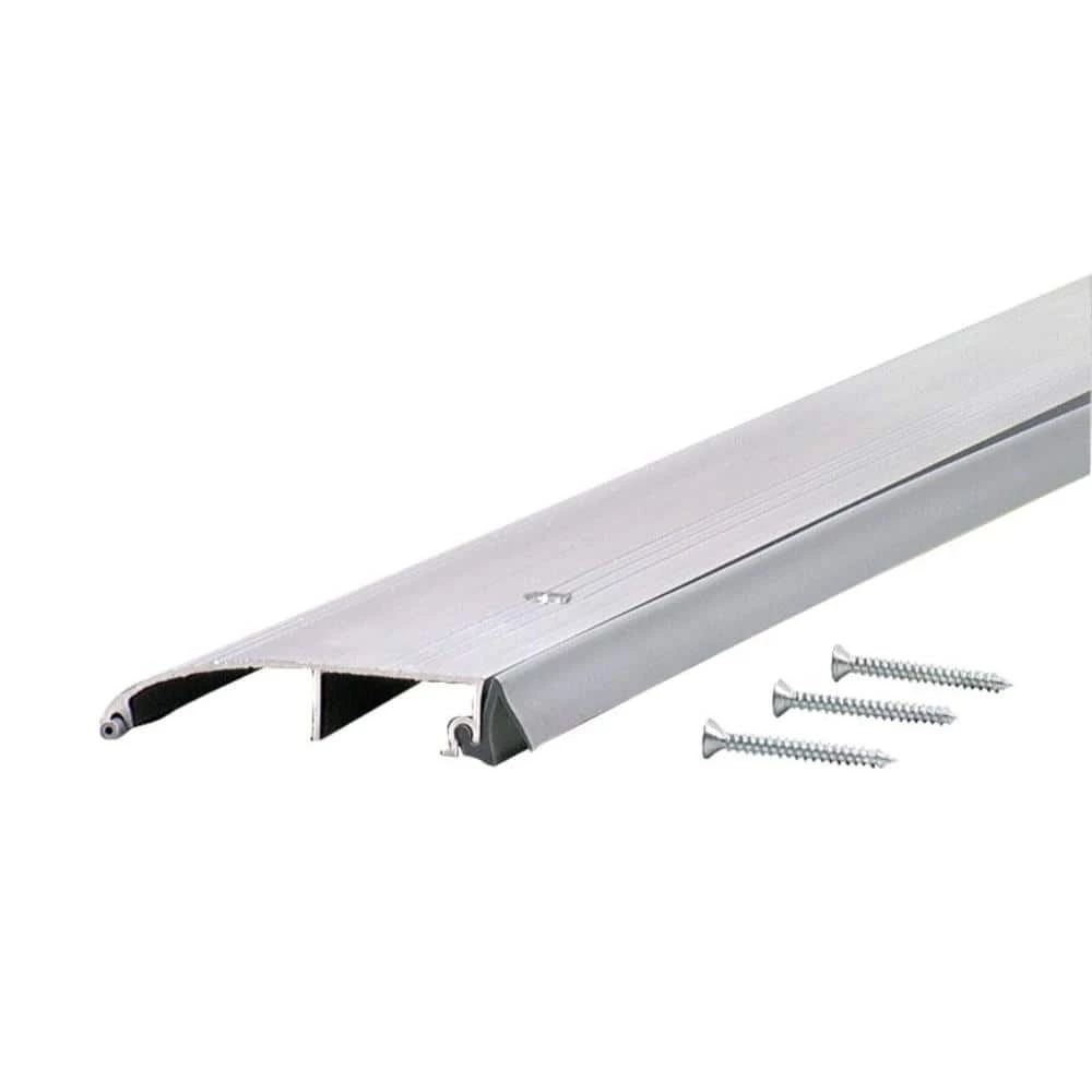 The M-D Heavy-duty Aluminum Low-profile Outswing Door Threshold features a vinyl seal for protection from drafts, moisture, dust, and insects. The bumper-style design is specifically made for outswing doors. As the door swings shut the vinyl bumper insert creates a seal on the side of the door. The threshold can be used to install with a new door or to replace an existing threshold. All of the hardware needed for installation is included. Before installation, the threshold can be cut to a desired length by using a hacksaw.