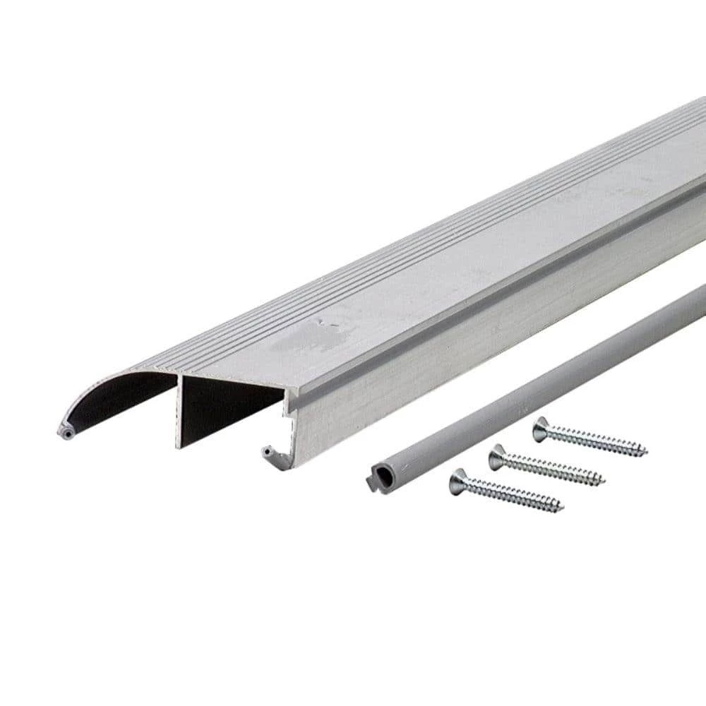 The M-D Aluminum High-profile Outswing Door Threshold features a vinyl seal for protection from drafts, moisture, dust, and insects. The bumper-style design is specifically made for outswing doors. As the door swings shut the vinyl bumper insert creates a seal on the side of the door. The threshold can be used to install with a new door or to replace an existing threshold. All of the hardware needed for installation is included. Before installation, the threshold can be cut to a desired length by using a hacksaw.