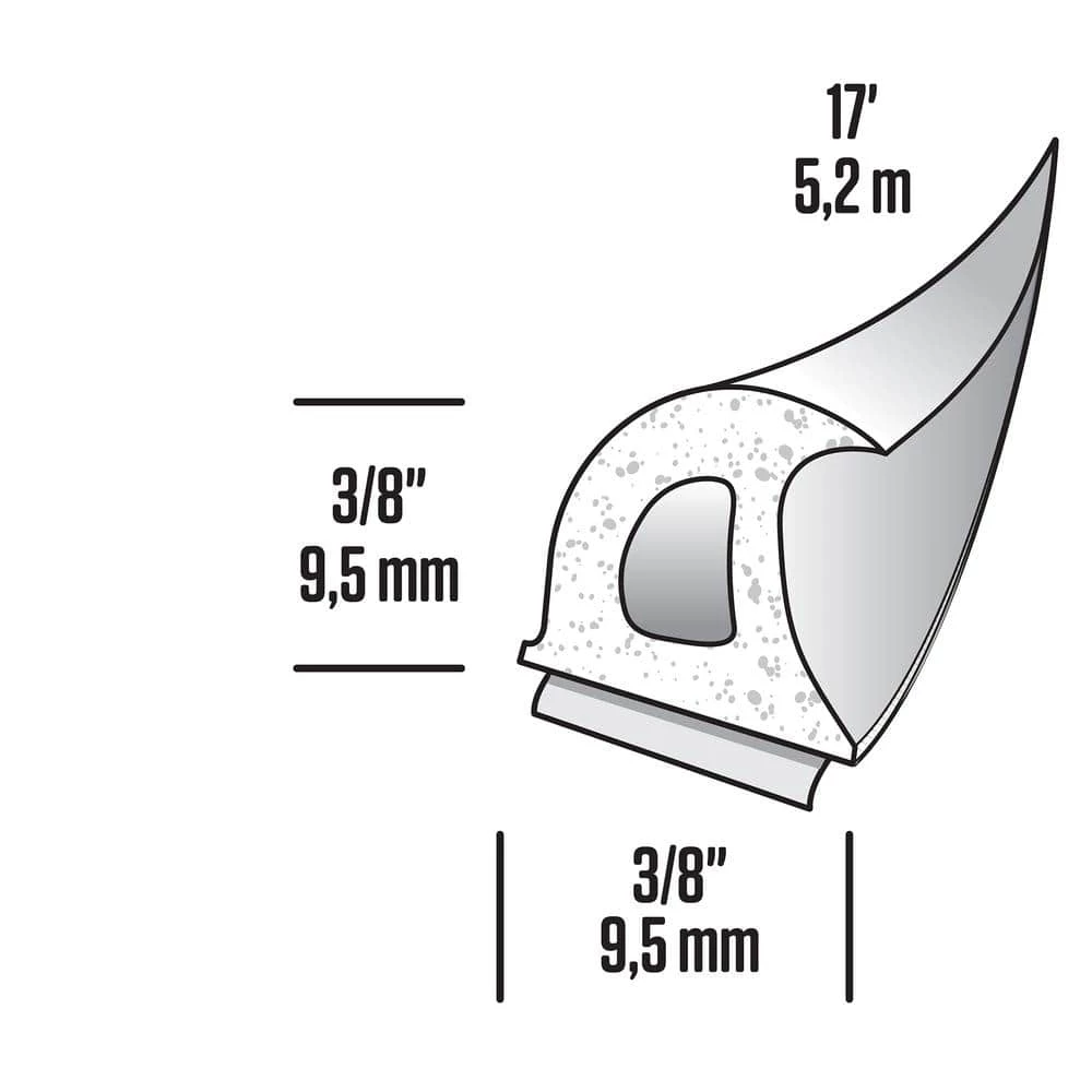 The MD Building Products Thermalblend 3/8 in. x 17 ft. Weatherseal is durably made from a silicone and EPDM rubber blend that retains its flexibility even in extreme hot- and cold temperatures. It helps seal gaps up to 3/8 in.