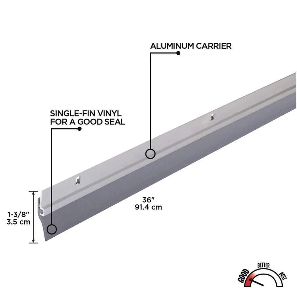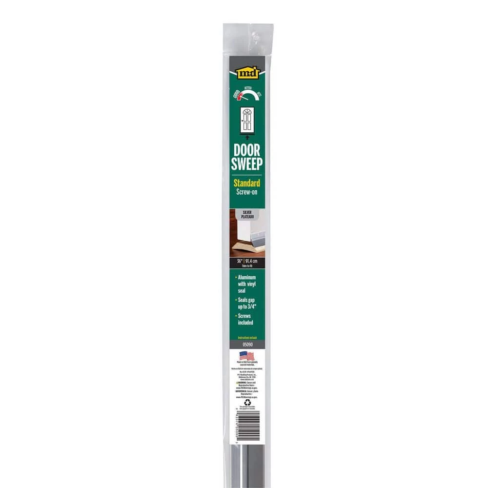 The M-D Aluminum and Vinyl Standard Screw-on Door Sweep features a single-fin vinyl seal for protection from drafts, moisture, dust and insects. Save on energy by sealing the bottom of the door and keeping the heat or air conditioning from escaping. All of the hardware needed to install is included. Before installation, cut to desired length by using a hacksaw.