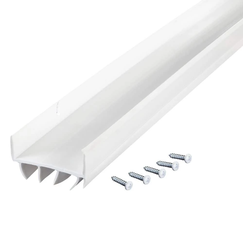 The M-D Vinyl U-Shape Screw-on Under Door Seal features vinyl fins for protection from drafts, moisture, dust and insects. Save on energy by sealing the bottom of the door and keeping the heat or air conditioning from escaping. Screw holes are oval shape to allow for easy adjustment to fully seal the gap at the bottom of the door. All of the hardware needed to install is included. Before installation, cut to desired length using a hacksaw.