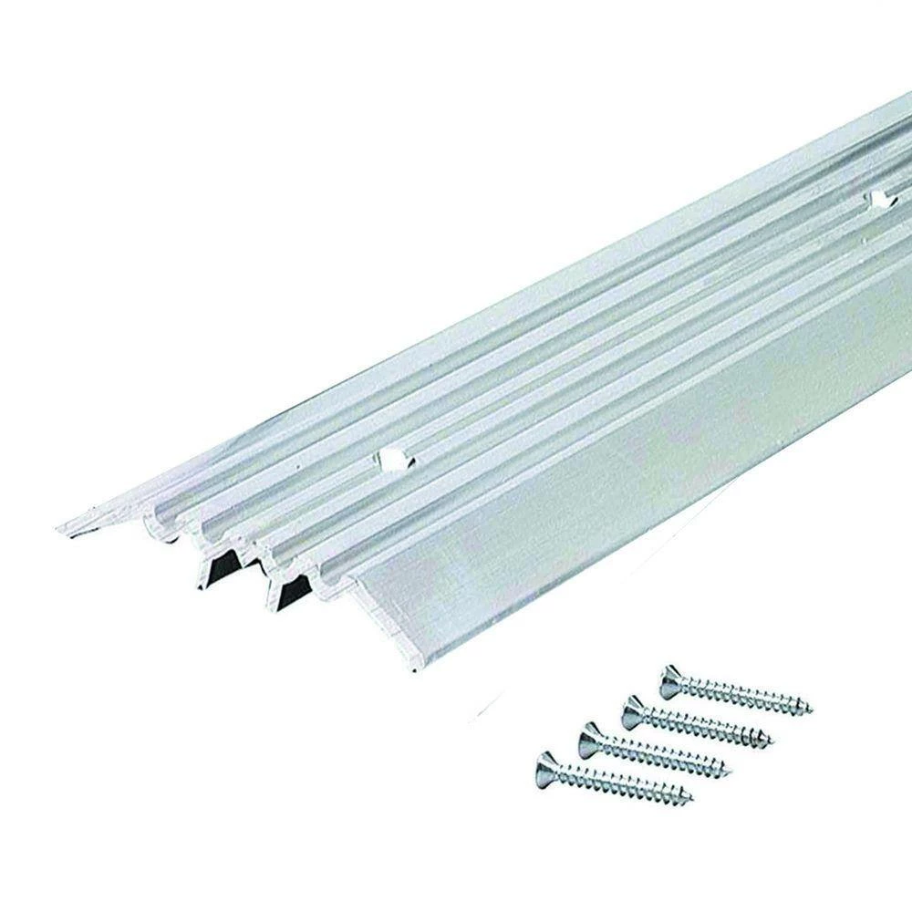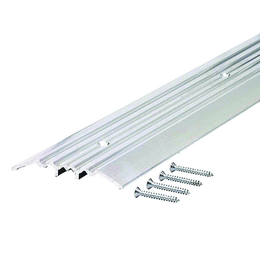 The M-D Heavy-duty Aluminum Commercial Flat Top Threshold is designed to seal the bottom of your door from drafts, moisture, dust and insects. This threshold is approved by the ADA and is great for doorways which need wheelchair access. It is UL-fire rated to be compatible with fire rated doors. This feature reduces the spread of fire and smoke between rooms. To seal your doorway, this product should be used with a door sweep or an under door seal. All of the hardware needed for installation is included. Before installation, the threshold can be cut to a desired length by using a hacksaw.