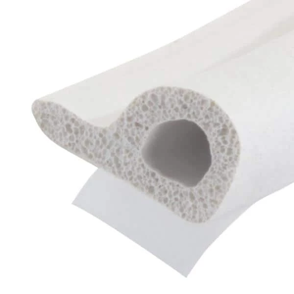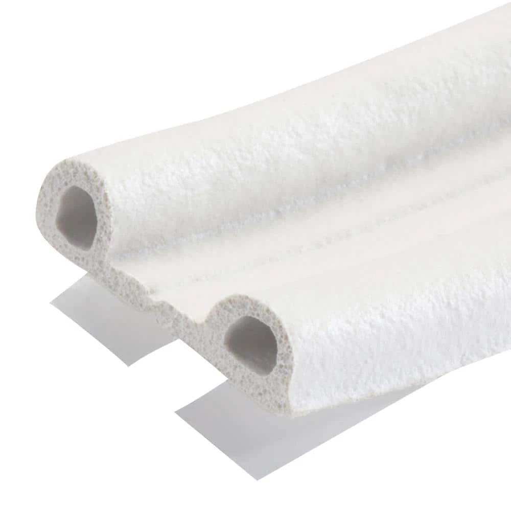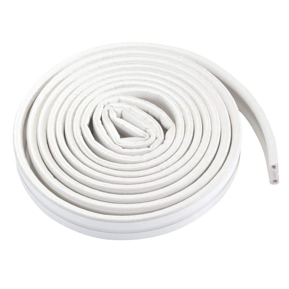This white MD Building Products 3/8 in. x 17 ft. All-Climate P-strip Weather Stripping is made of EPDM cellular rubber and is designed to seal out drafts, dust and moisture around doors and windows. It remains flexible and durable even in extreme temperatures.