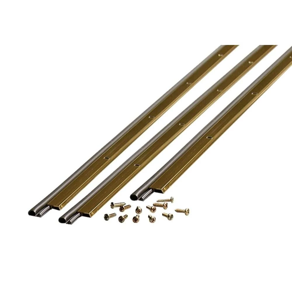 The M-D Aluminum and Vinyl Screw-on Top and Sides Door Seal Kit protects against drafts, moisture, dust and insects. Save on energy by sealing the top and sides of your door and keeping the heat or air conditioning from escaping. This kit comes with three pieces, two 84″ pieces for the vertical sides of the door frame, and one 36″ piece for the top of the door frame. All of the hardware needed to install is included. Before installation, cut to desired length using a hacksaw and be sure the vinyl bulb is compressed against the door to create a proper seal. Simply screw the three pieces into the door frame.